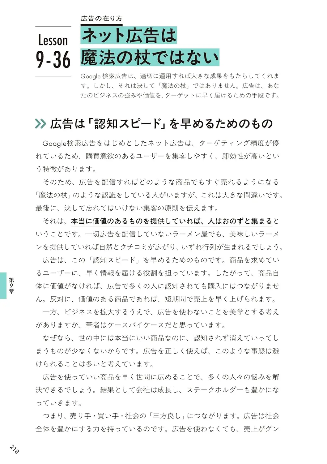 弊社は広告運用代行がメイン事業ですので、この本を読んで代行依頼が減ると経営的には正直苦しいですが、ユーザー・お客様にとって内製化が一番の幸せであれば、それに貢献できるのが最高だと思って執筆しました。これからGoogle検索広告に挑戦する方、一度挫折してしまった方、あるいは少額予算のため広告代理店への依頼が難しい方。本業と兼務で運用に取り組むすべての方にとって心強い一冊になるはずです。