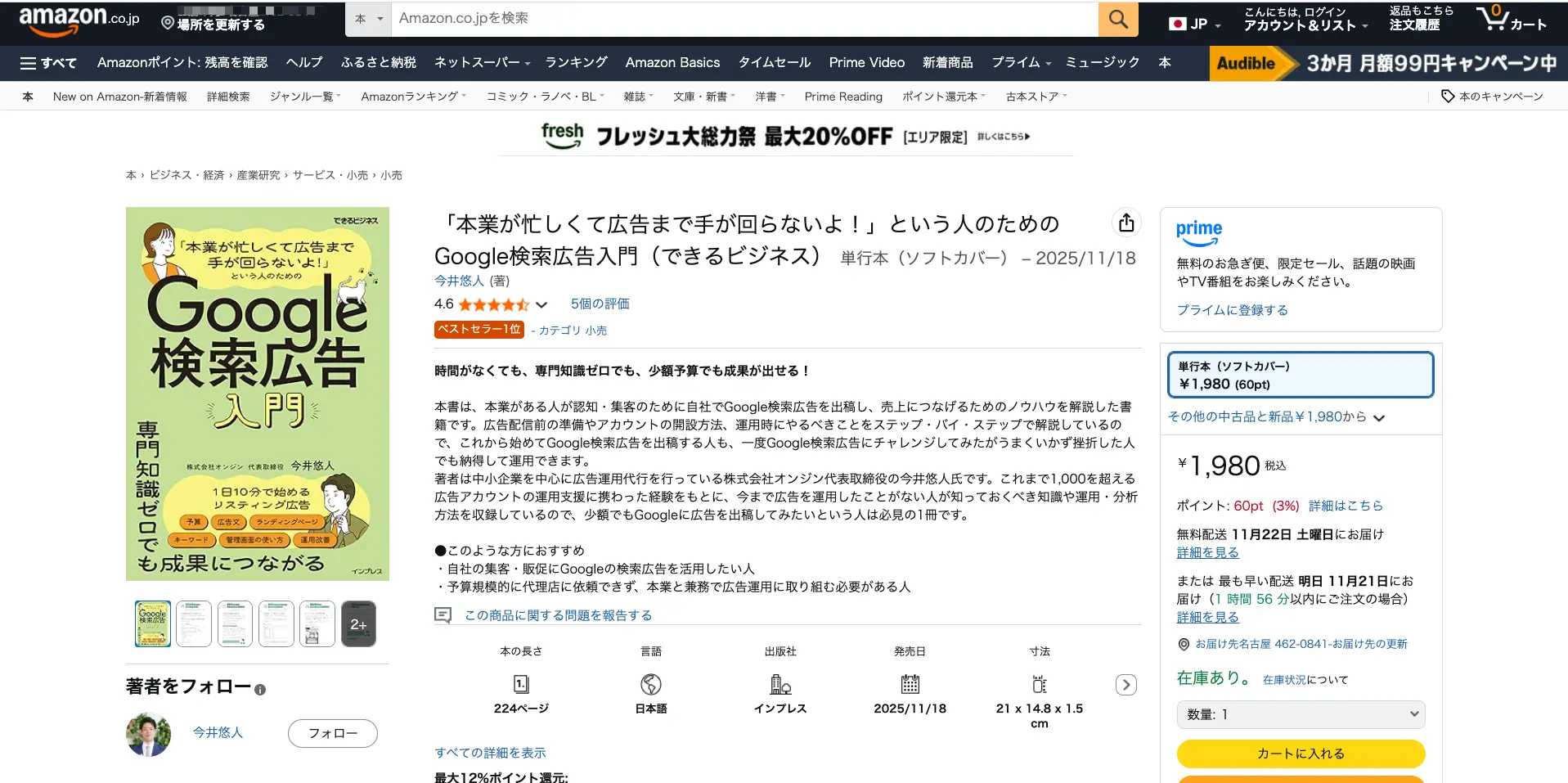 本業がある人が集客のために自社でGoogle検索広告を出稿し、売上につなげるためのノウハウを解説した書籍です。広告配信前の準備やアカウントの開設方法、運用時にやるべきことをステップ・バイ・ステップで解説しています。