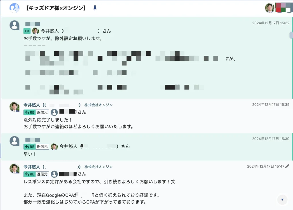 その点オンジンさんは一人の担当者が広告運用もコミュニケーションも全て担当してくださり、連絡する窓口が一本なので楽ですね。