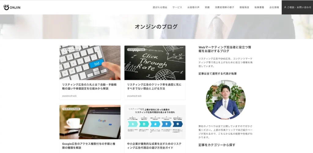 その中で広告代理店を探していたところ、Google検索で上位に表示されていたオンジンさんを知りました。 問い合わせや依頼の決め手になったのは、ブログ記事から分かる経験の豊富さと、Webサイト全体から感じる誠実さです。事務的な対応ではなく、売上を伸ばすために親身になってくれると感じました。